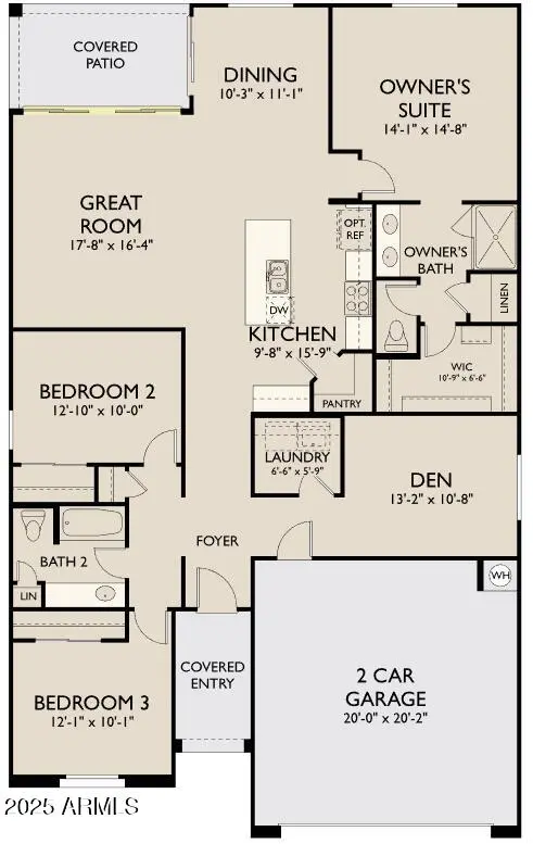 Nestled in the sought-after city of San Tan Valley, this charming single-story Marigold floor plan offers 1,779 sq ft of living space and is conveniently located off Combs Rd and Schnepf Rd. The home features 3 bedrooms, 2 bathrooms, a den, and a Modern Desert exterior. Inside, upgrades from the Milan Collection include stainless steel appliances, quartz countertops, an elegant backsplash, and 42'' upper shaker-style cabinets. The great room includes a 4-panel glass slider that leads to the covered patio and spacious backyard. Plus, a spacious 2 car garage. Additional highlights include 8-foot interior doors, wood plank ceramic tile flooring, modern cabinet hardware, a single-basin sink with an upgraded faucet, and matching faucets and hardware in the bathrooms. The home also come