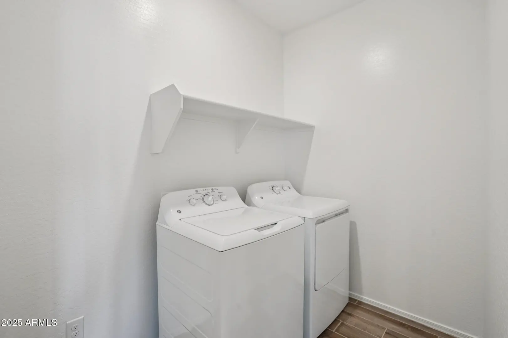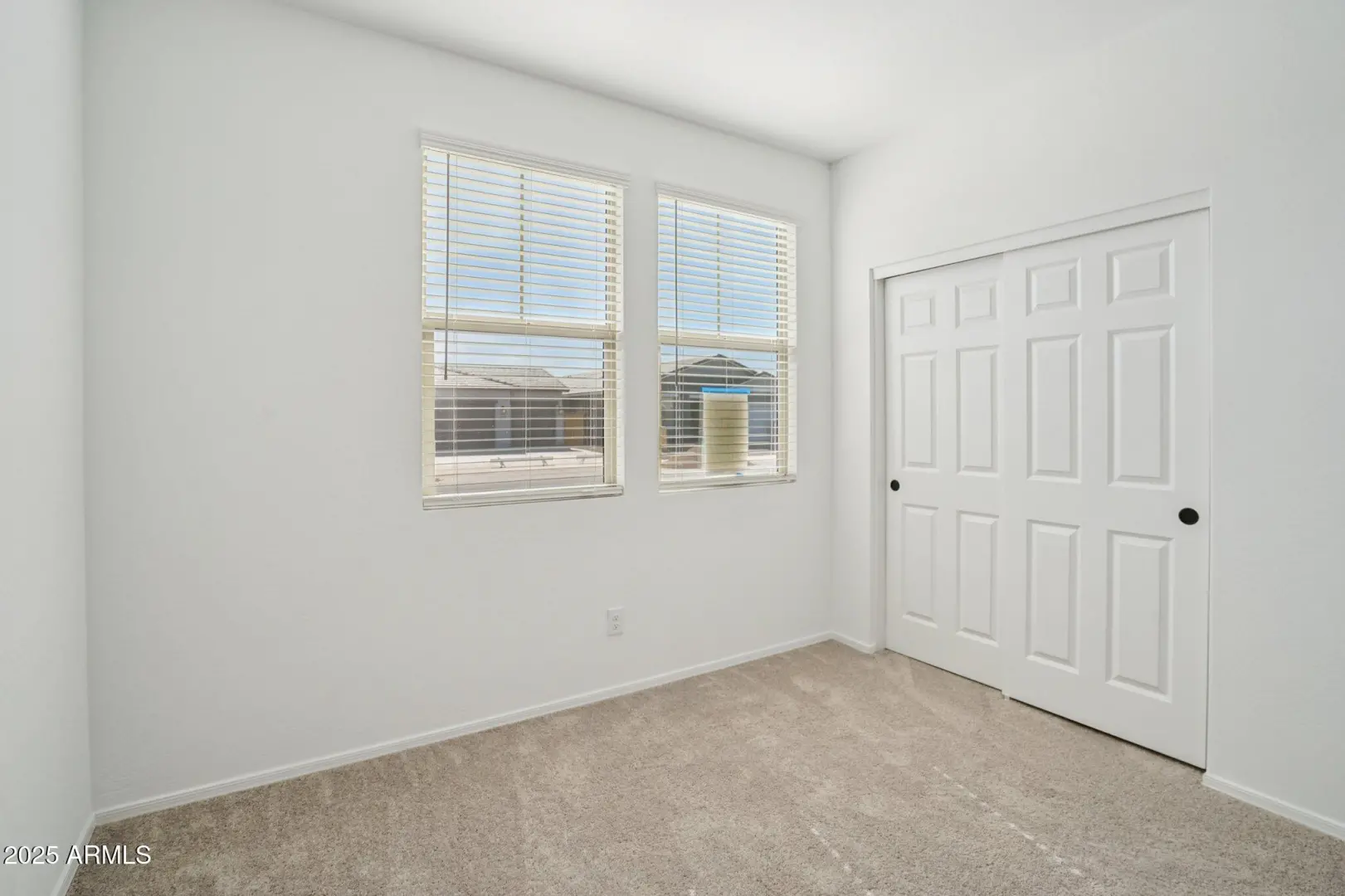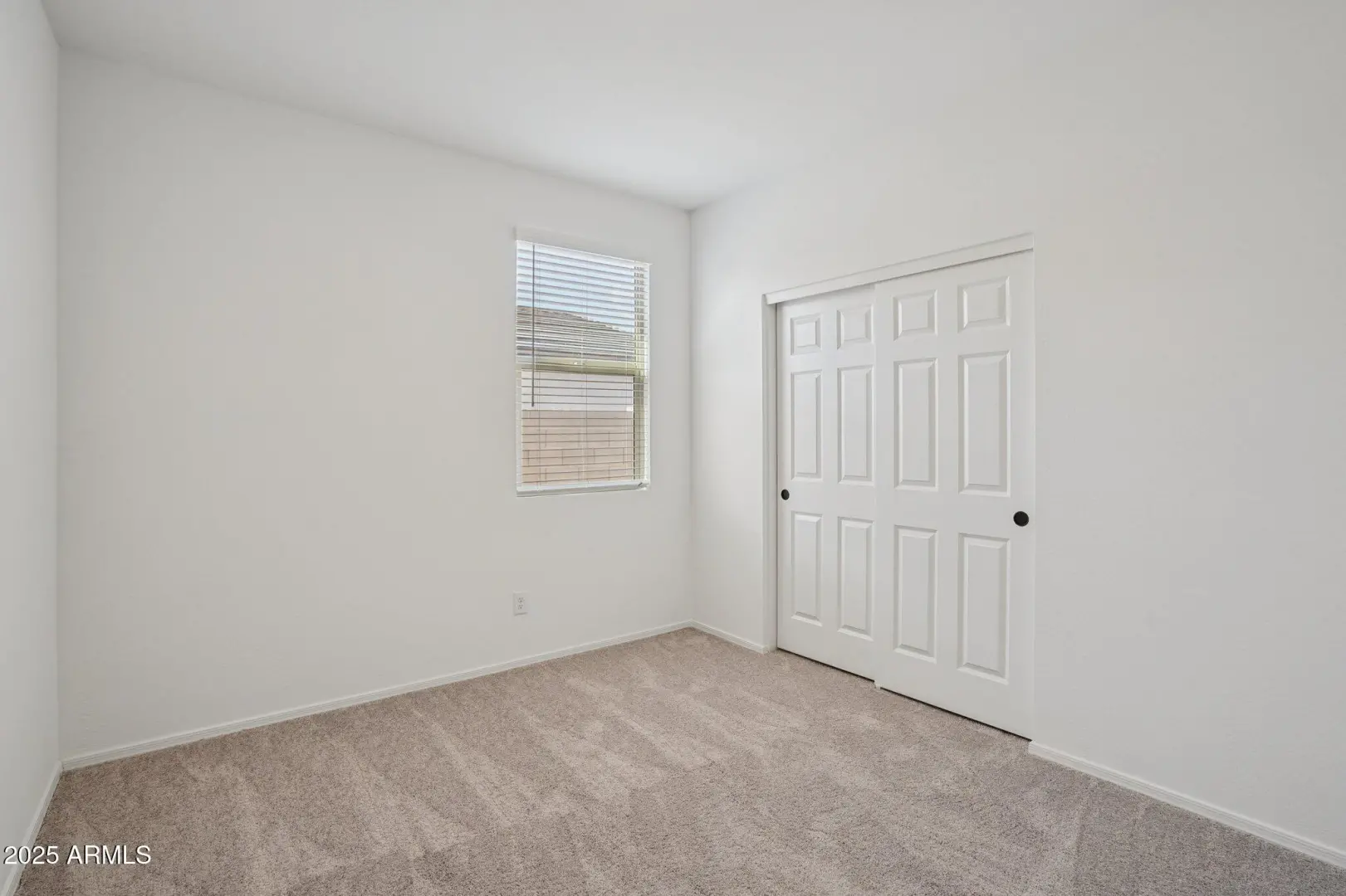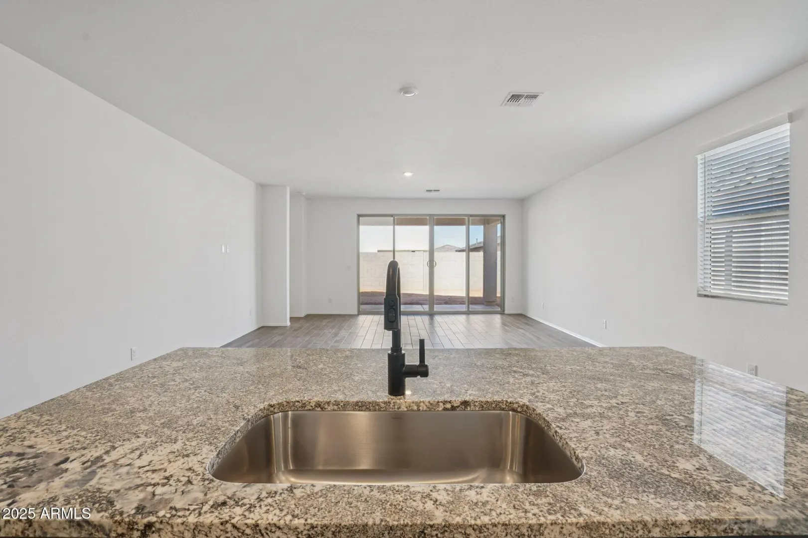 Welcome to the Sunflower! Boasting 2,219 sq ft, 4 bedrooms, 3 baths; this home offers a versatile floor plan perfect for any buyer. Enjoy 9 ft ceilings, wood-look tile in main areas, carpet in bedrooms, and 2.5 car garage. The spacious kitchen features the Artisan Collection with 42'' upper soft grey cabinets, granite countertops, tiled backsplash, and hardware. The great room has a 4-panel glass slider that opens to a covered patio. The guest retreat can be a mother-in-law suite, office, or additional living area. GE washer/dryer, fridge, and blinds also included! The Amarillo Creek community offers parks, pickleball court, basketball, and is conveniently located near Route 347 for easy commuting to Phoenix. Minutes from dining, shopping, and all the entertainment that Maricopa has