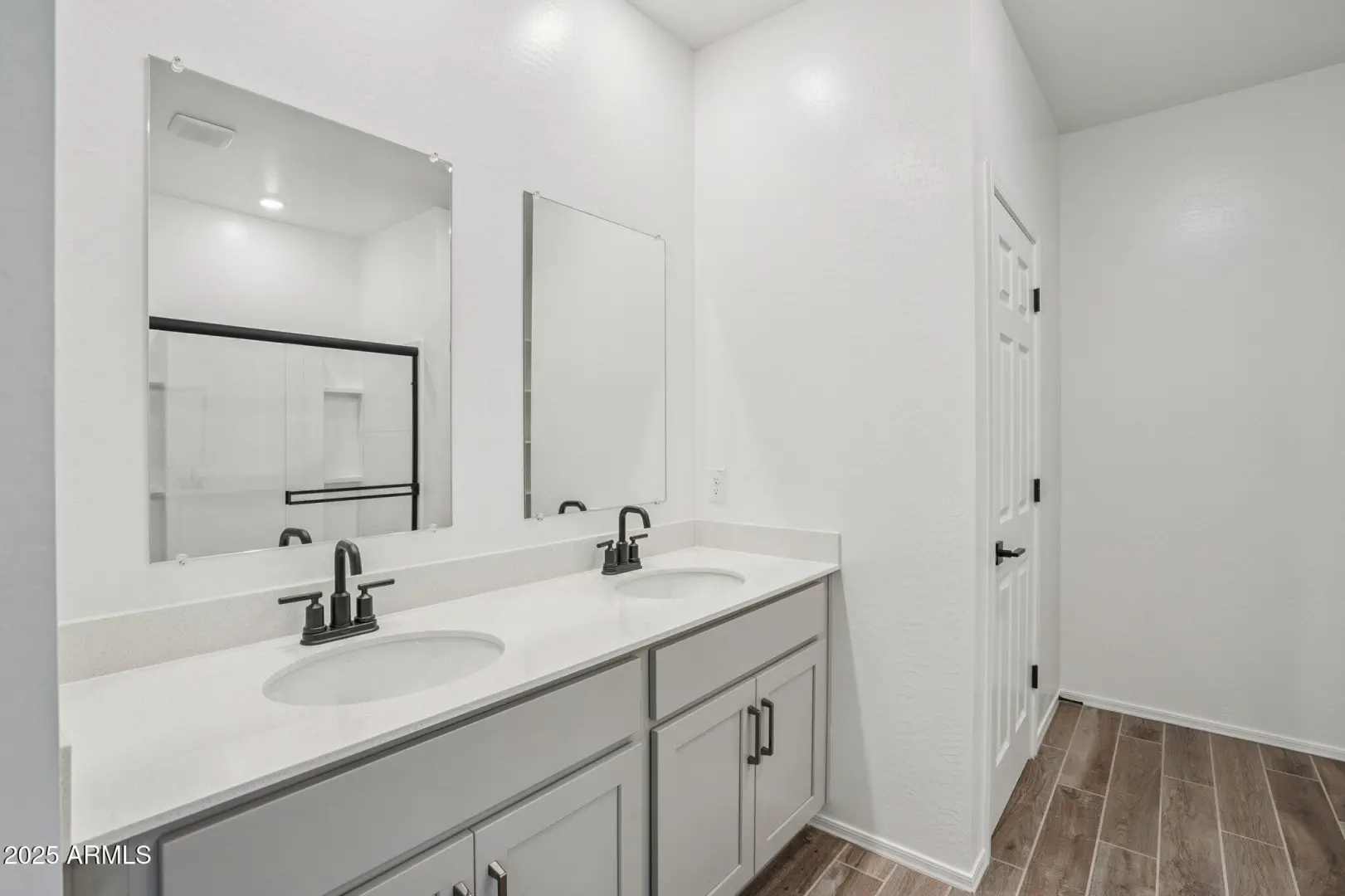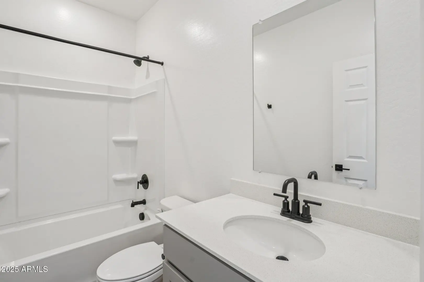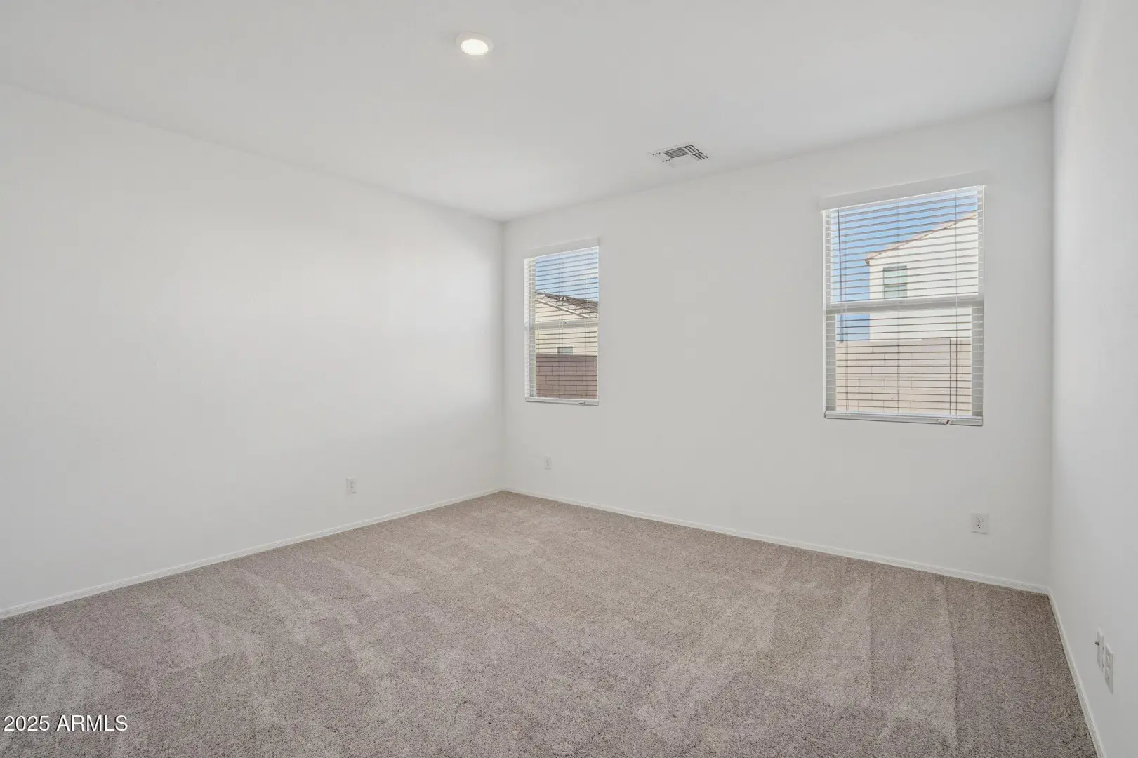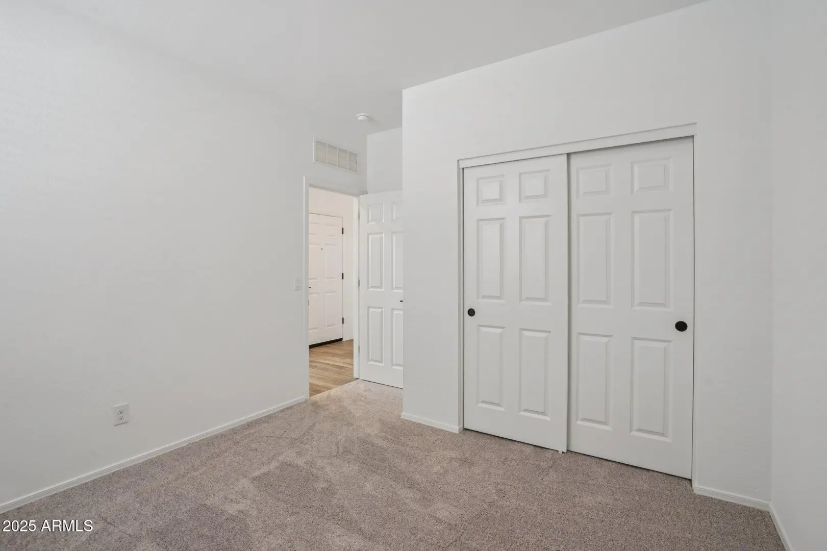 Welcome to the Sunflower! Boasting 2,219 sq ft, 4 bedrooms, 3 baths; this home offers a versatile floor plan perfect for any buyer. Enjoy 9 ft ceilings, wood-look tile in main areas, carpet in bedrooms, and 2.5 car garage. The spacious kitchen features the Artisan Collection with 42'' upper soft grey cabinets, granite countertops, tiled backsplash, and hardware. The great room has a 4-panel glass slider that opens to a covered patio. The guest retreat can be a mother-in-law suite, office, or additional living area. GE washer/dryer, fridge, and blinds also included! The Amarillo Creek community offers parks, pickleball court, basketball, and is conveniently located near Route 347 for easy commuting to Phoenix. Minutes from dining, shopping, and all the entertainment that Maricopa has