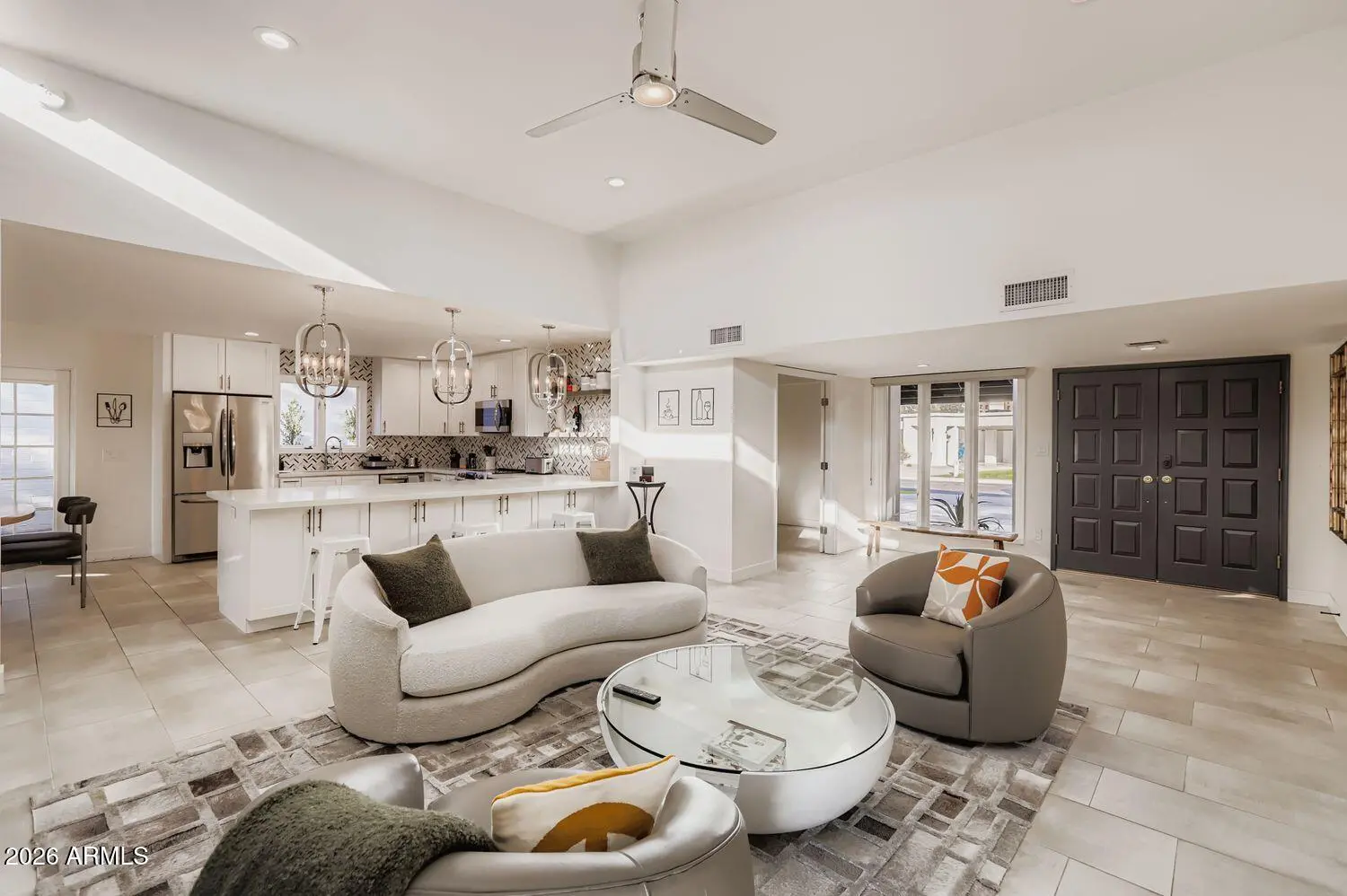 This isn't just a place to live -- it's a lifestyle that very few get to claim as their own. Minutes from Scottsdale Fashion Square, the Southwest's premier luxury retail destination, the valley's finest dining, nightlife, Talking Stick Resort, and Top Golf Scottsdale, the location alone is unmatched in 85258. Nestled within the coveted Sands Scottsdale community, this recently renovated 4-bedroom, 2.5-bath townhome is a rare find. The show stopping chef's kitchen stuns with luminous quartz countertops, designer statement lighting, and an expansive breakfast bar built for both quiet mornings and effortless entertaining.