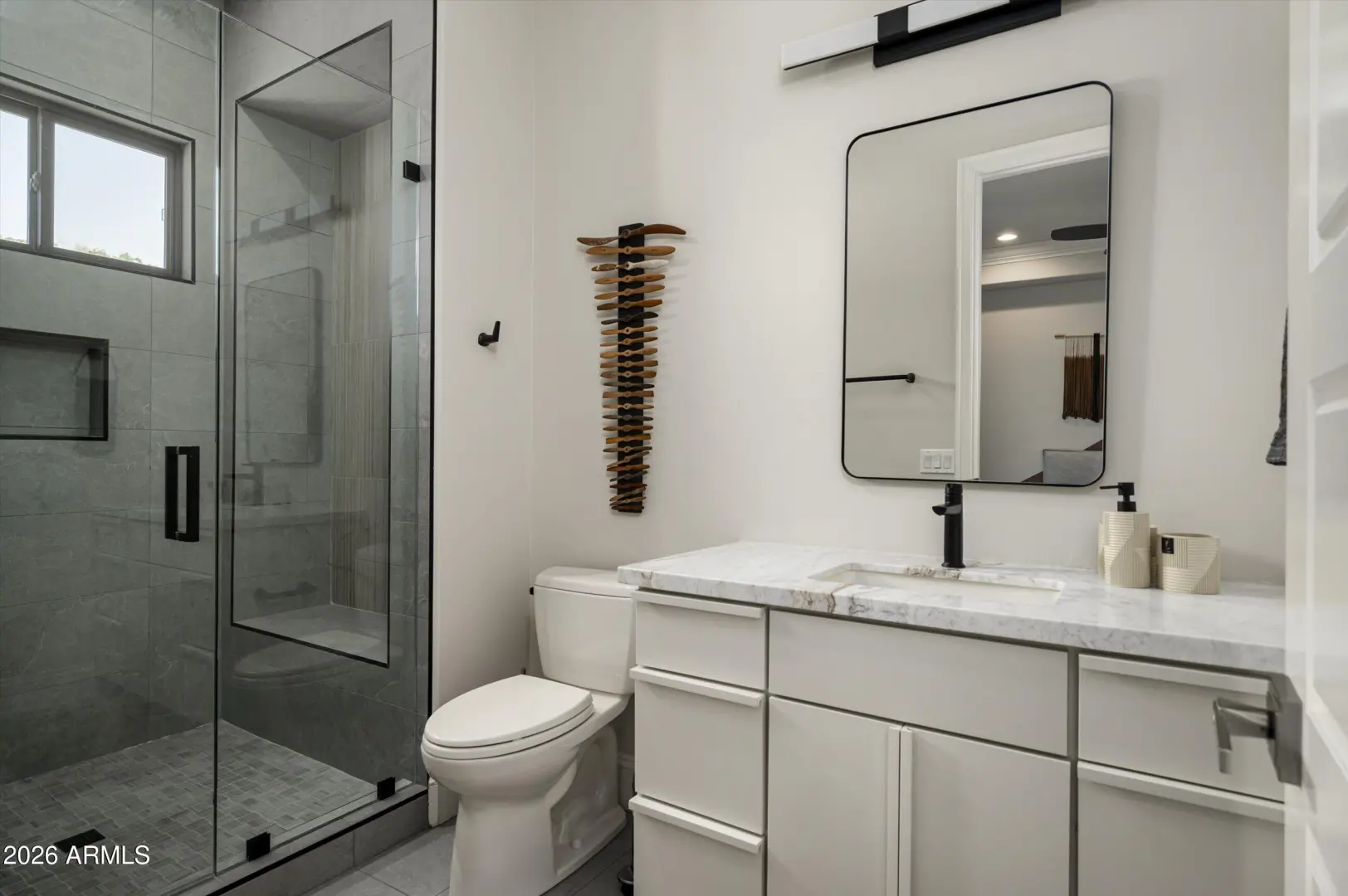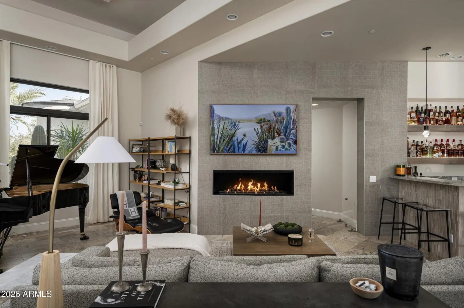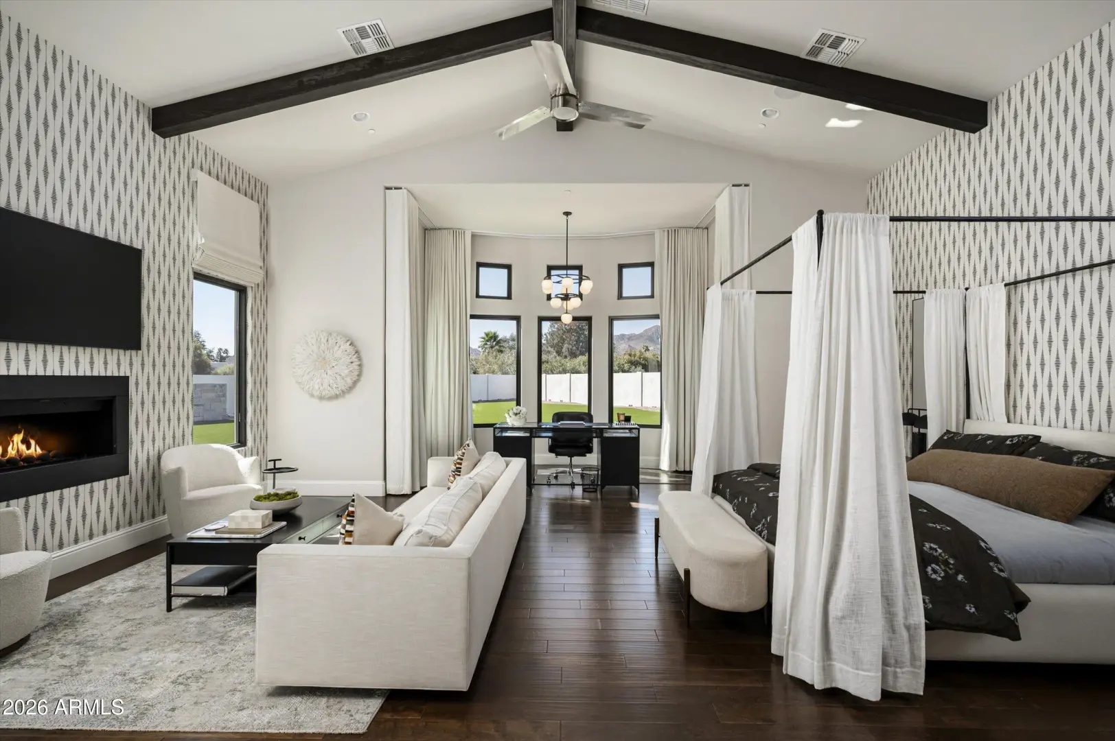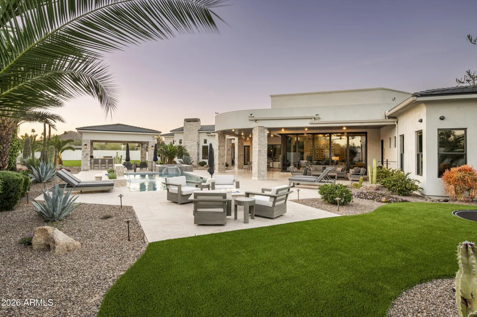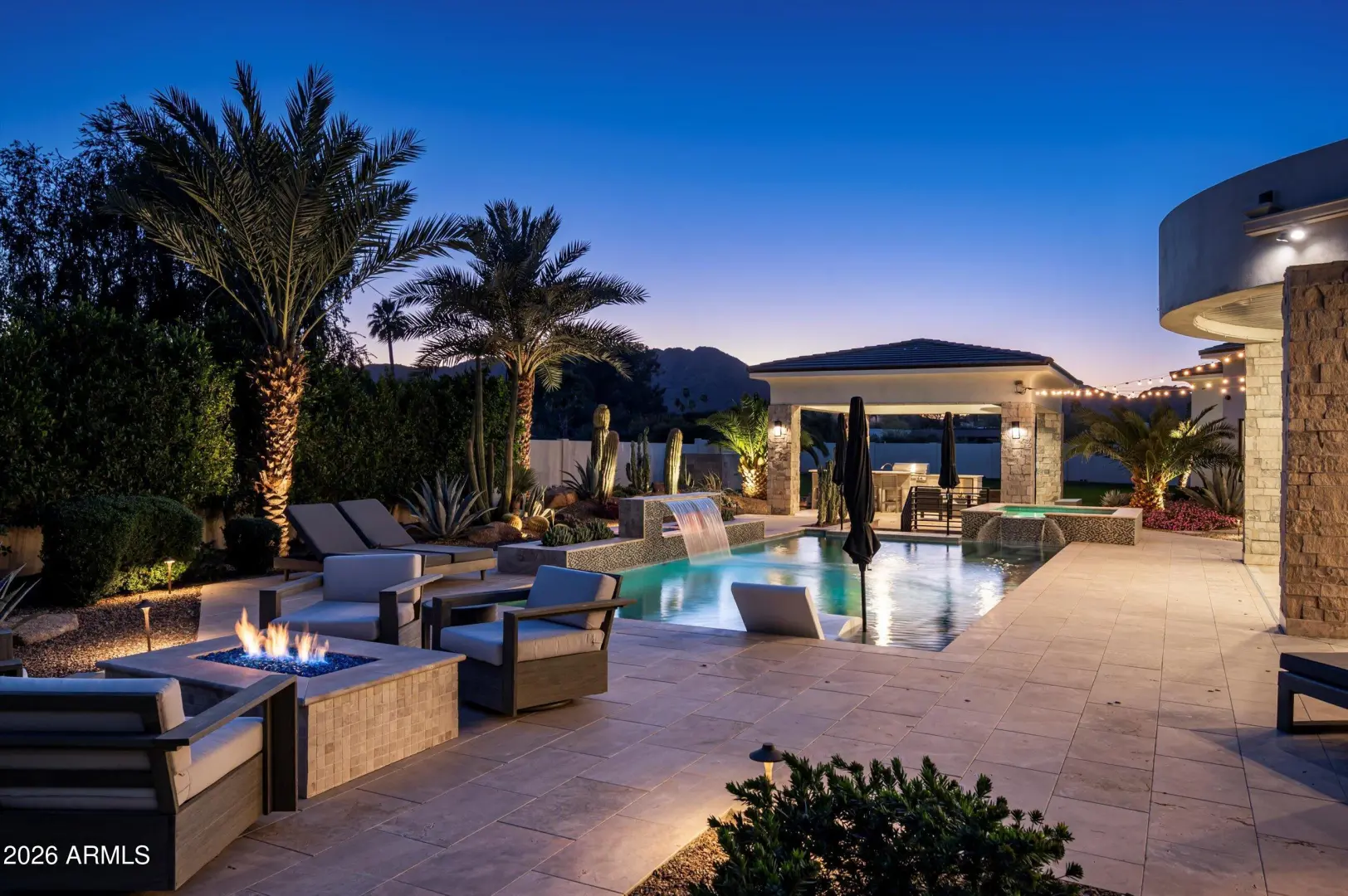 Set in the heart of prestigious Paradise Valley, this property is a private desert retreat surrounded by luxury estates and breathtaking mountain scenery. This single level residence offers 5 en-suite bedrooms, 5.5 bathrooms, a game room, study and approximately 6,744 square feet of thoughtfully designed living space. The home welcomes you with generous living and entertaining areas filled with natural light, high ceilings and seamless indoor-outdoor flow. The kitchen features beautiful custom cabinetry, high end appliances, quartz countertops, ample storage and an ideal layout for both everyday living and hosting. The primary suite serves as a private retreat, complete with fireplace, spa-style bath, walk-in closet and patio access. Outdoors, the property is designed for true Arizona